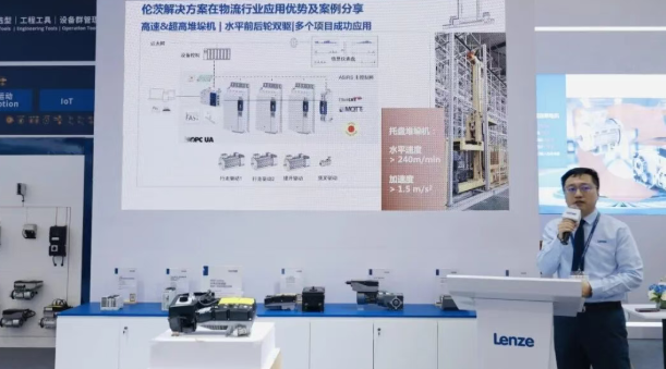 Lenze의 중국 물류 산업 영업 이사인 창싱 가오는 현장에서 이 솔루션이 이미 여러 중요한 시나리오에 성공적으로 적용되었다고 소개했습니다. 예를 들어, 안타(Anta)의 쑤저우 운영 센터에서 Lenze 시스템이 장착된 스태커 크레인은 수평 속도 5.4m/s를 달성했습니다. 한 주요 리튬 배터리 제조업체의 컨베이어 라인 프로젝트에서 스마트 모터 솔루션은 케이블 배선을 80% 이상 절감하고 설치 효율을 크게 향상시켰습니다.